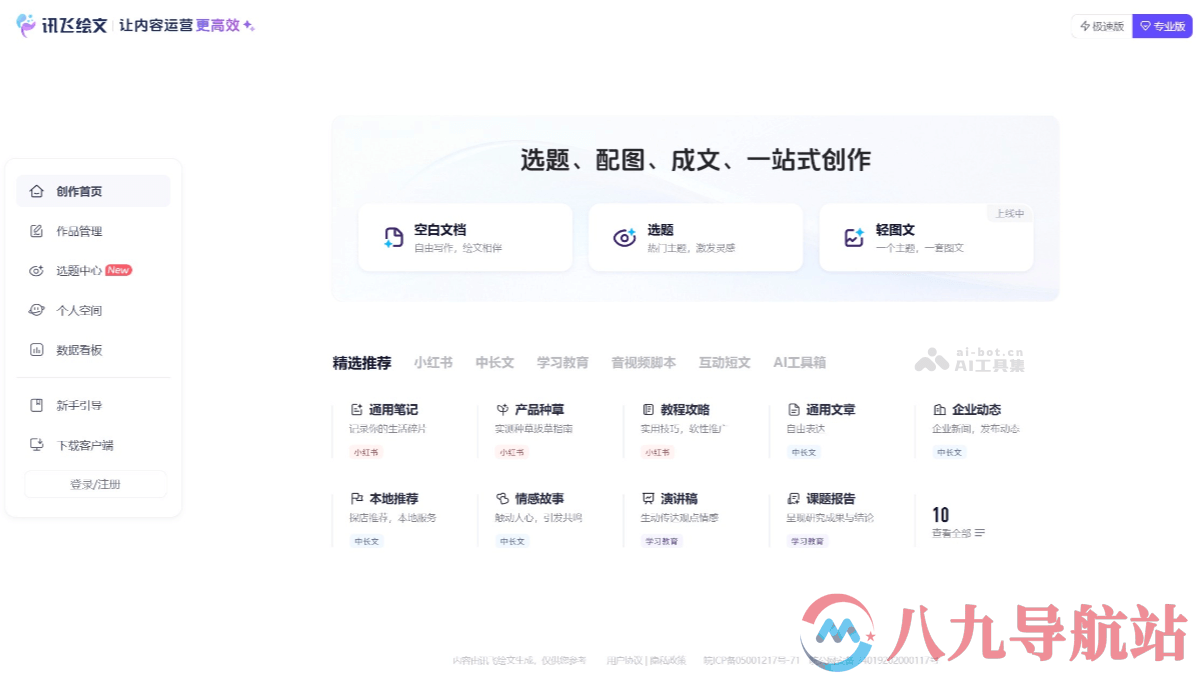 讯飞绘文是科大讯飞推出的免费一站式AIGC内容运营平台,集成讯飞星火MAX、DeepSeek V3-0324 和 DeepSeek R1三大模型,为内容创作者提供高效、智能的写作解决方案。集选题推荐、智能写作、AI配图、排版润色、内容审查、多平台发布及数据分析等功能于一体,能快速生成热点文章、营销文案、学术论文等各类内容。用户可以通过强大的AI选题功能获取灵感,一键生成文章草稿,并合私域知识库创作更具针对性的内容。智能配图和自动排版功能可提升内容的视觉效果,内容审查功能则能帮助用户降低风险。讯飞绘文支持将内容一键分发至多个平台,汇总数据提供优化建议,助力用户提升内容运营效率。